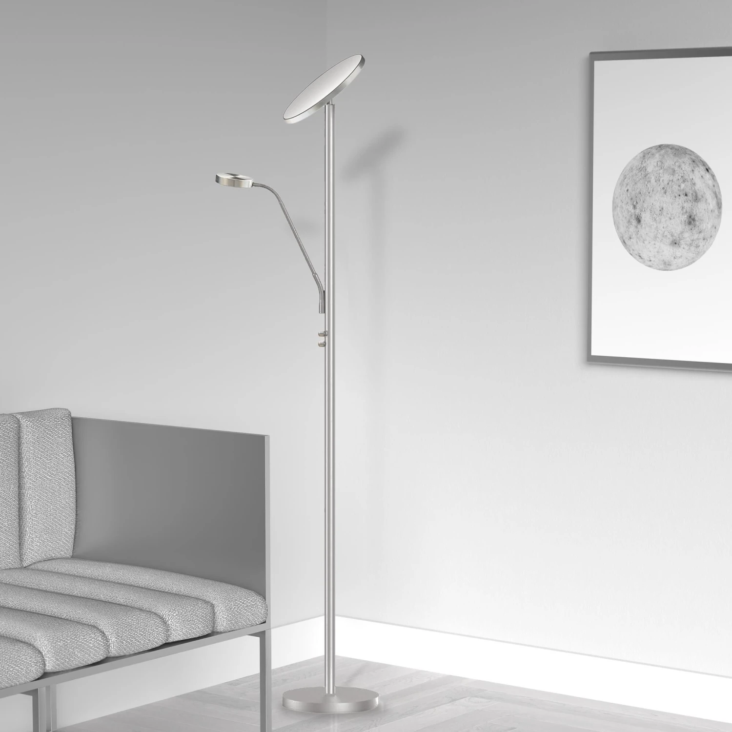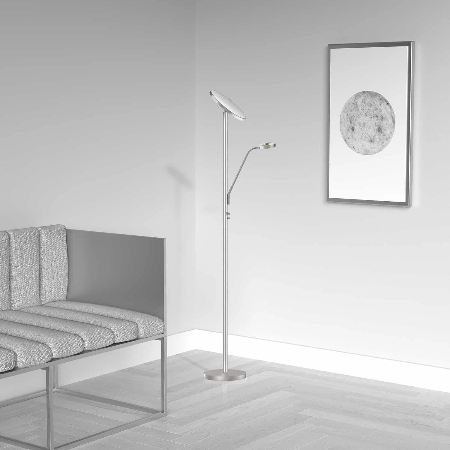 Adding welcome light in a smooth contemporary aesthetic, the LED Floor Lamp collection features a distinctive profile. The design features an integrated LED light. LED fixtures produce light at up to 90 percent better efficiency than incandescent lighting. The metal base and rod curves back slightly for the simple configuration, splitting into two arms for the mother/son light. The light housing directs illumination down from above, making it ideal for reading, studying or work. Available in both a simple and mother/son configuration, it’s a stylish and practical solution to any dark corners of your home or office.