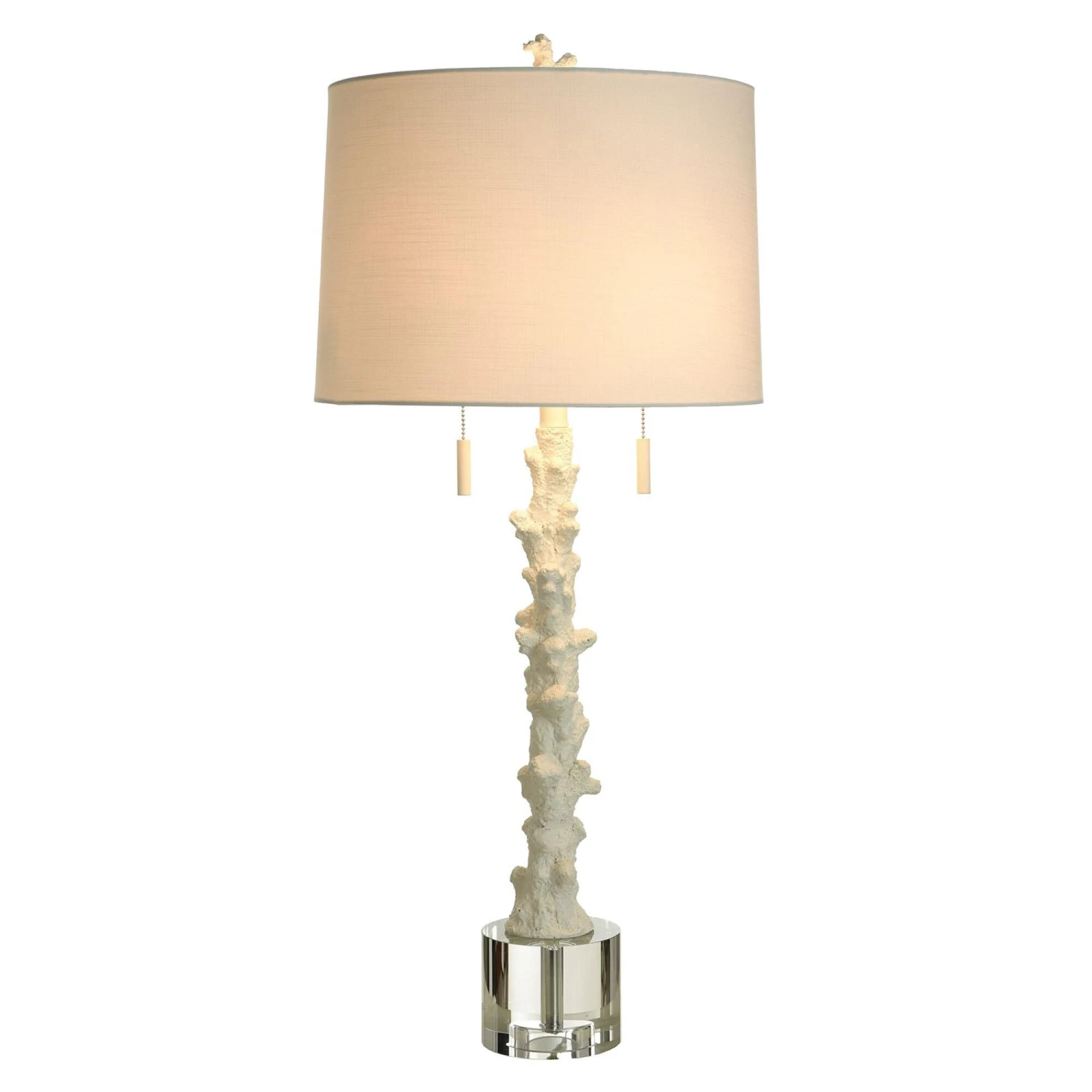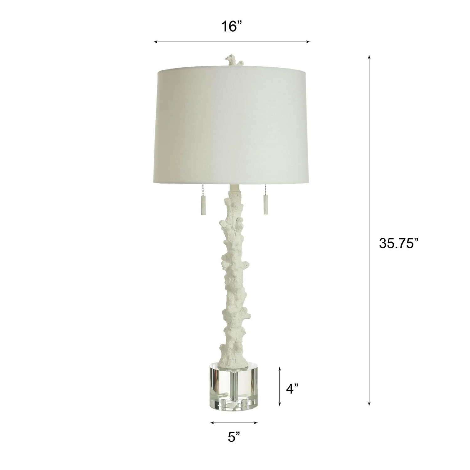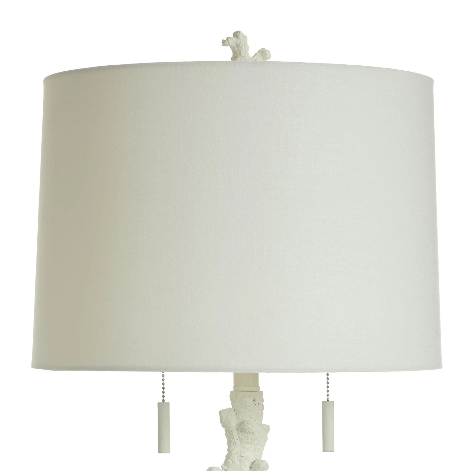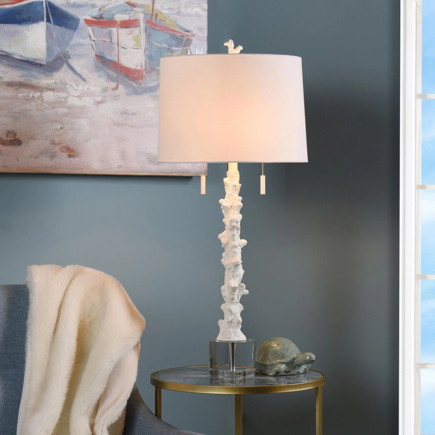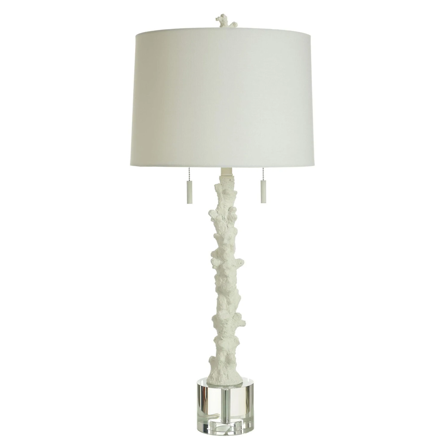 The Anarita Coastal Table Lamp from StyleCraft is centered on a sturdy looking coral statuette body that features metal accents for a modern flourish. This light is equipped with a double chain pull and clean white hardback shade.
