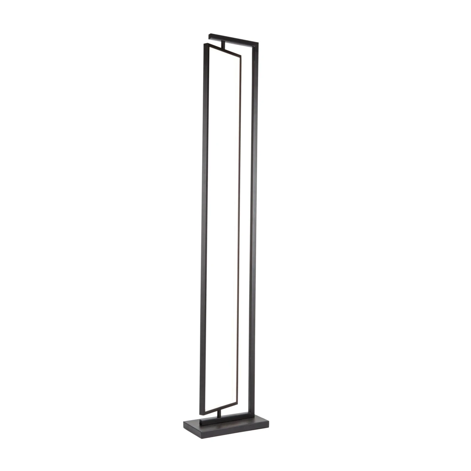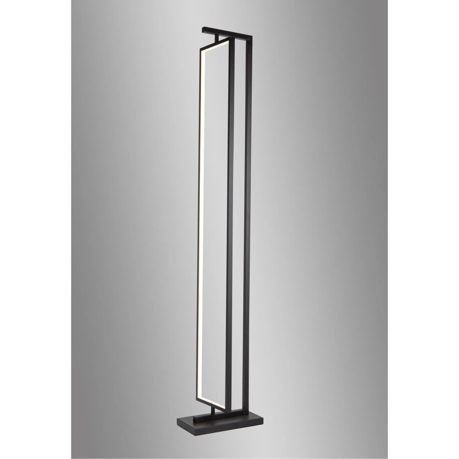 The “Cortina” collection floor lamp features a bright LED source, pivoting interior and a slide dimmer. This model is black.