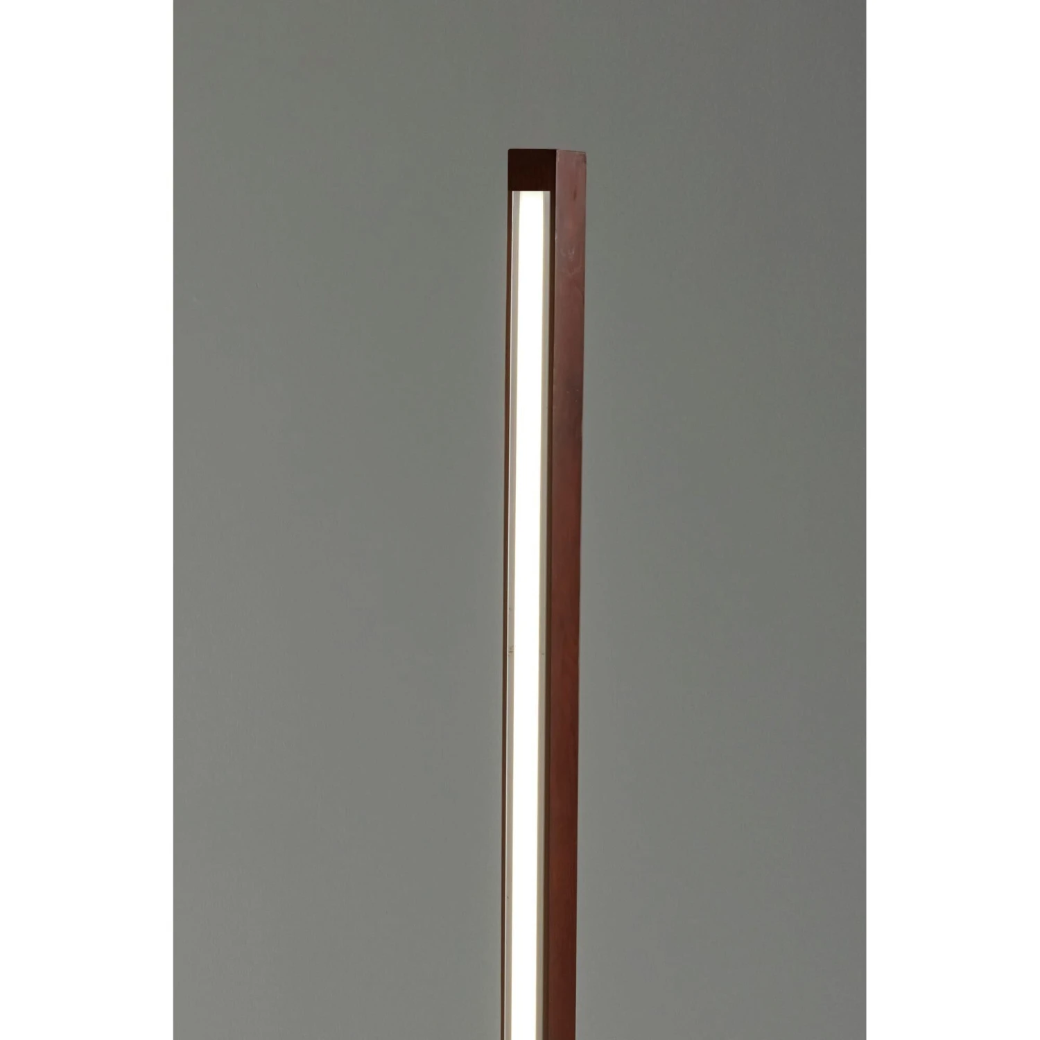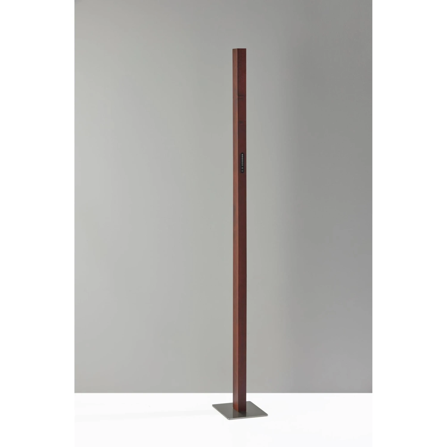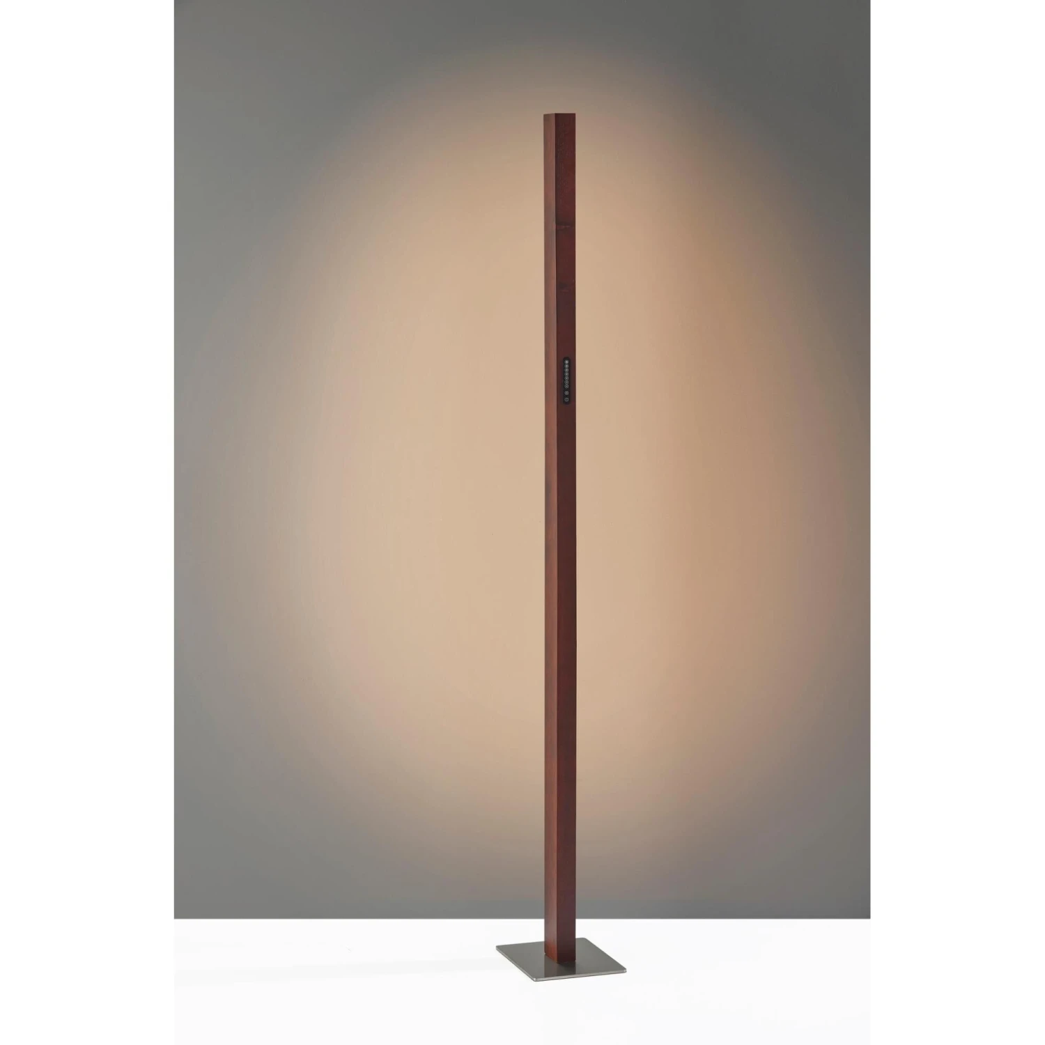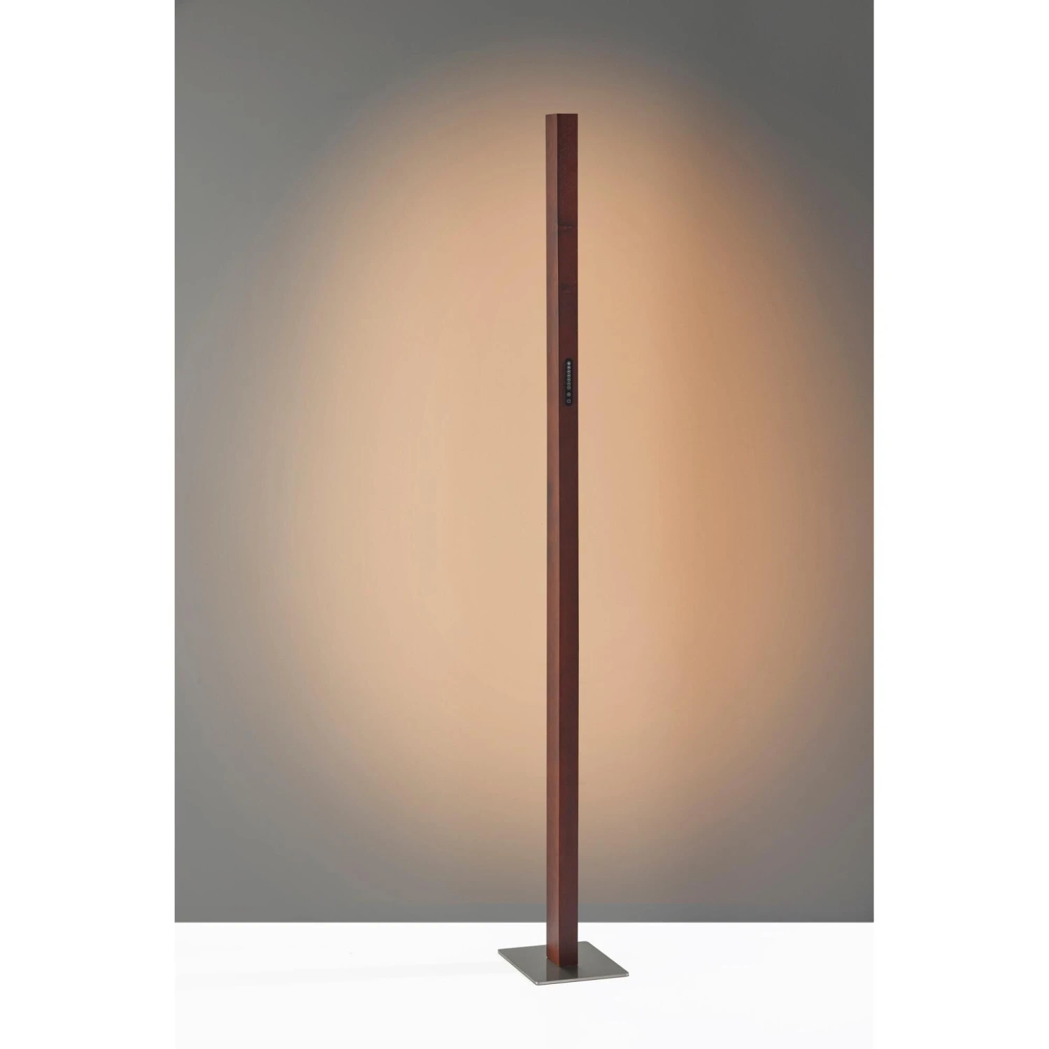 The Elliott LED floor lamp is the perfect addition to contemporary, minimalist dcor. Its rectangular lines and stripped-down architecture combined with smart touch technology create a lighting solution that is both stylish and versatile. The 60.5 tall lamp features a rectangular wooden body with a walnut finish and an integrated 32W LED light. The light produces 2,560 lumens that are softly distilled by the 57.5 tall frosted diffuser. Operated by a discrete smart touch switch located on the rectangular body, the lamp has six brightness settings and six color temperature settings to choose from so that the lighting can be fine-tuned to suit your space and your mood. The tall wooden body rests upon a low-profile, 7 x 8.75 rectangular brushed steel base.