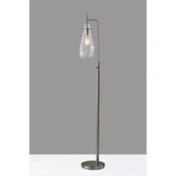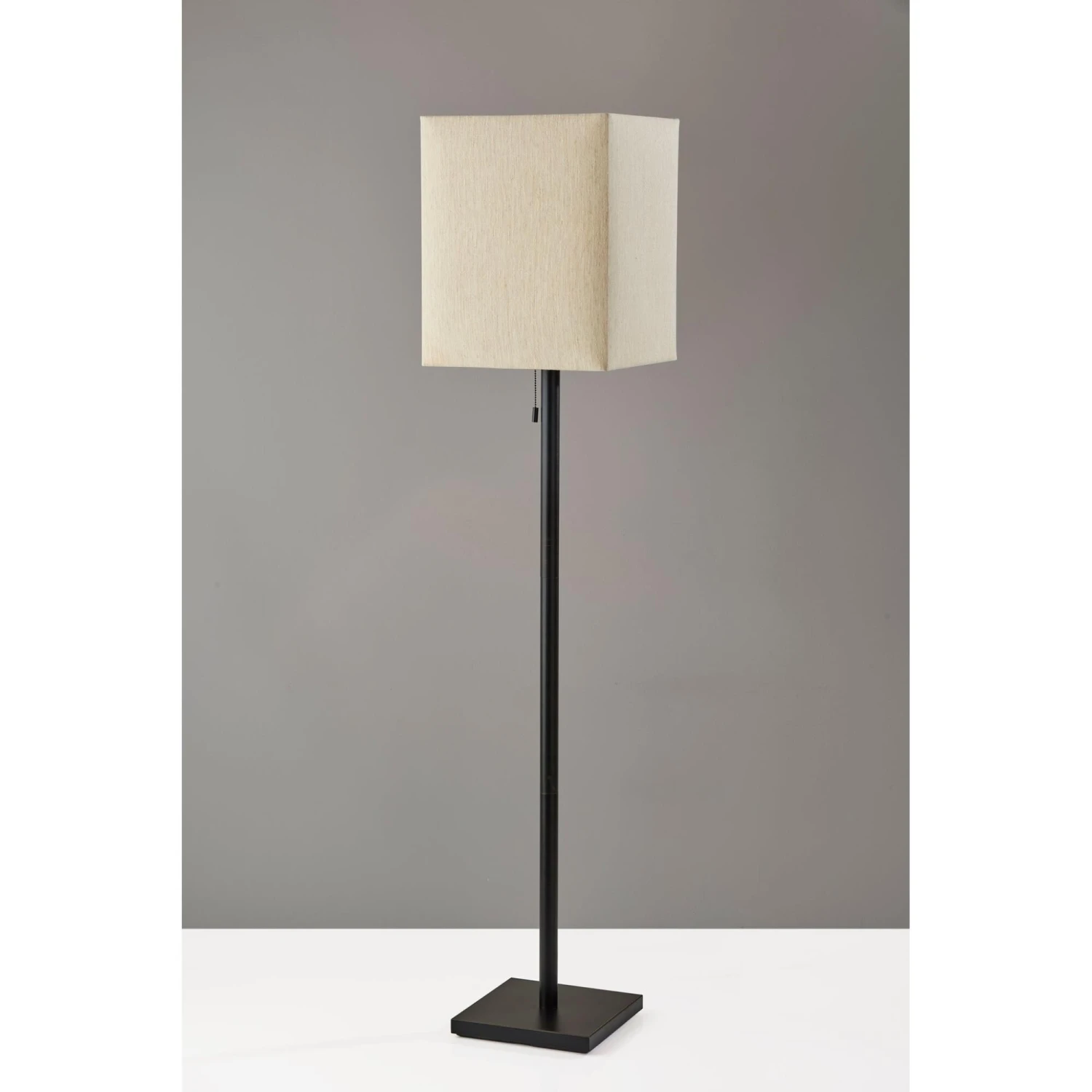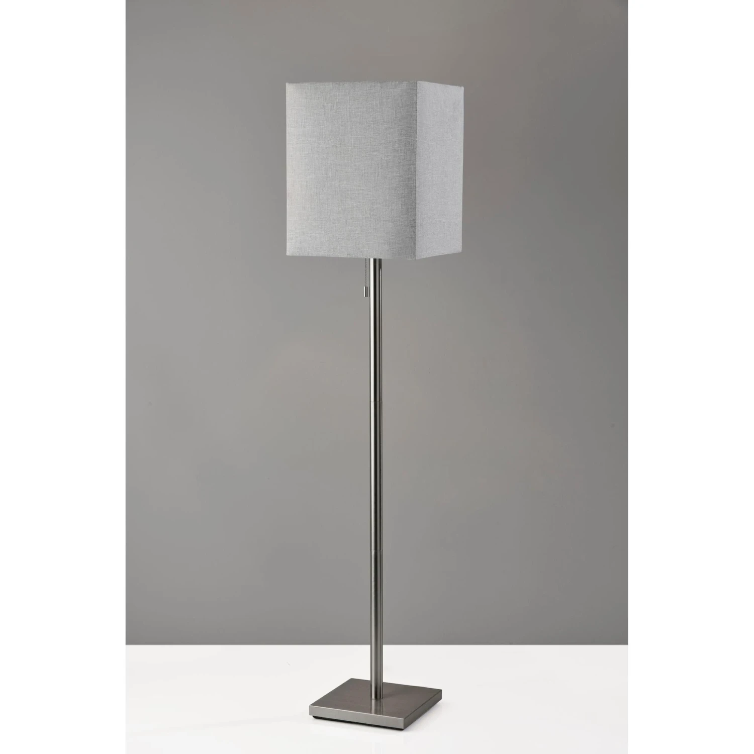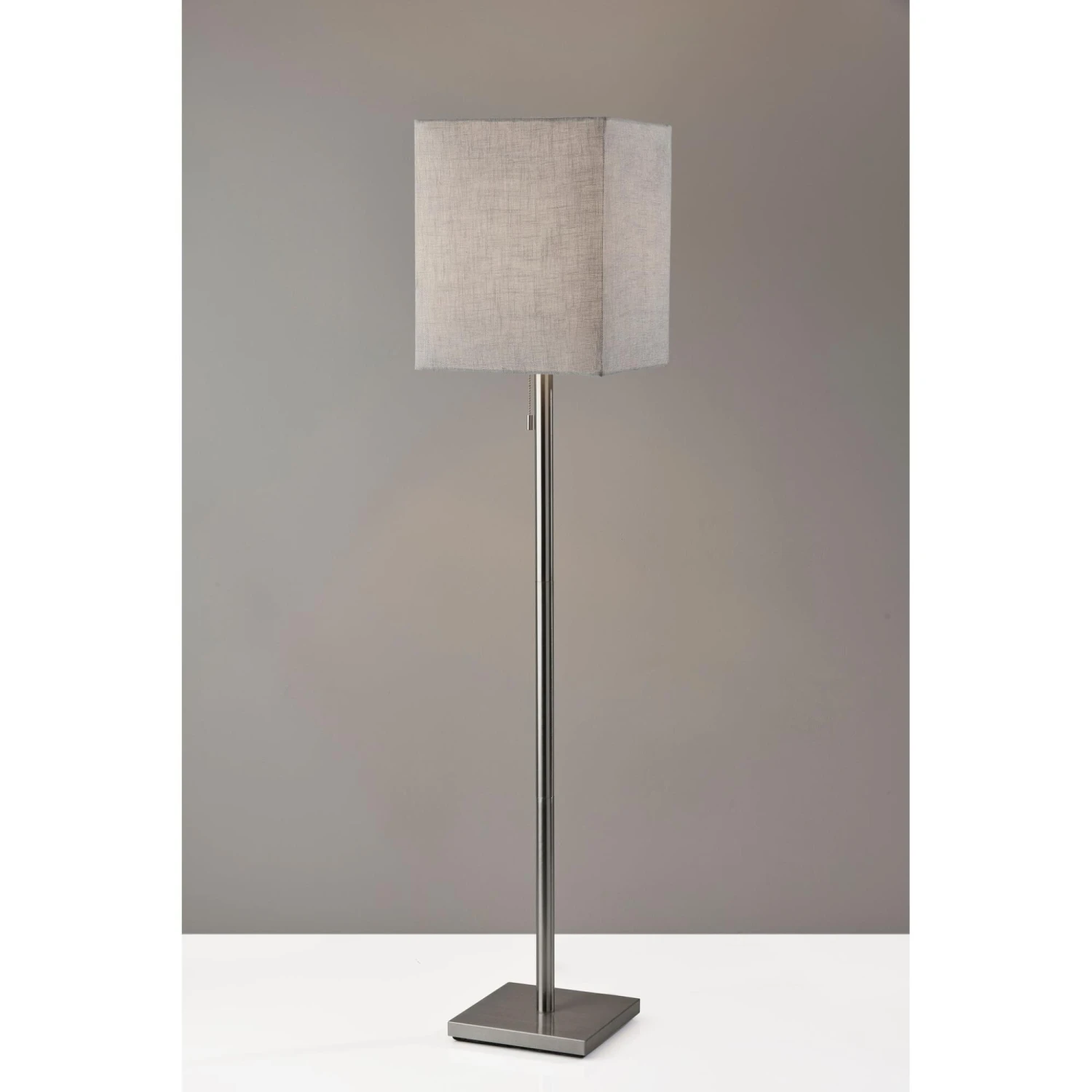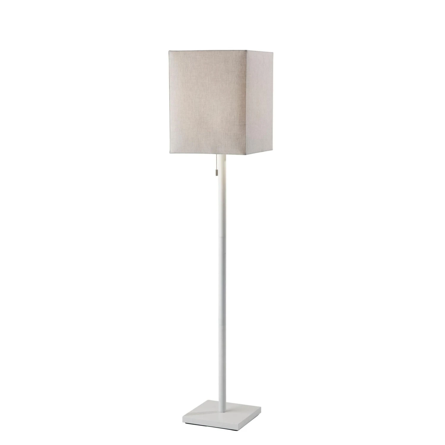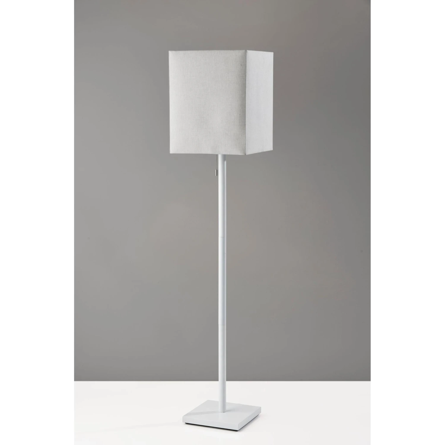 With a clean silhouette and stylish monochrome look, the 61 tall Estelle floor lamp is the perfect complement to any dcor. The lamp features a square taupe fabric shade that aesthetically balances the square metal base with its matte white finish. Operated by a metal pull chain switch, the Estelle floor lamp powers a 100W bulb (not included) and features a 6′ clear cord. The floor lamp is also available in a brushed steel finish with a light grey textured fabric shade or an antique bronze finish with a light brown textured fabric shade.