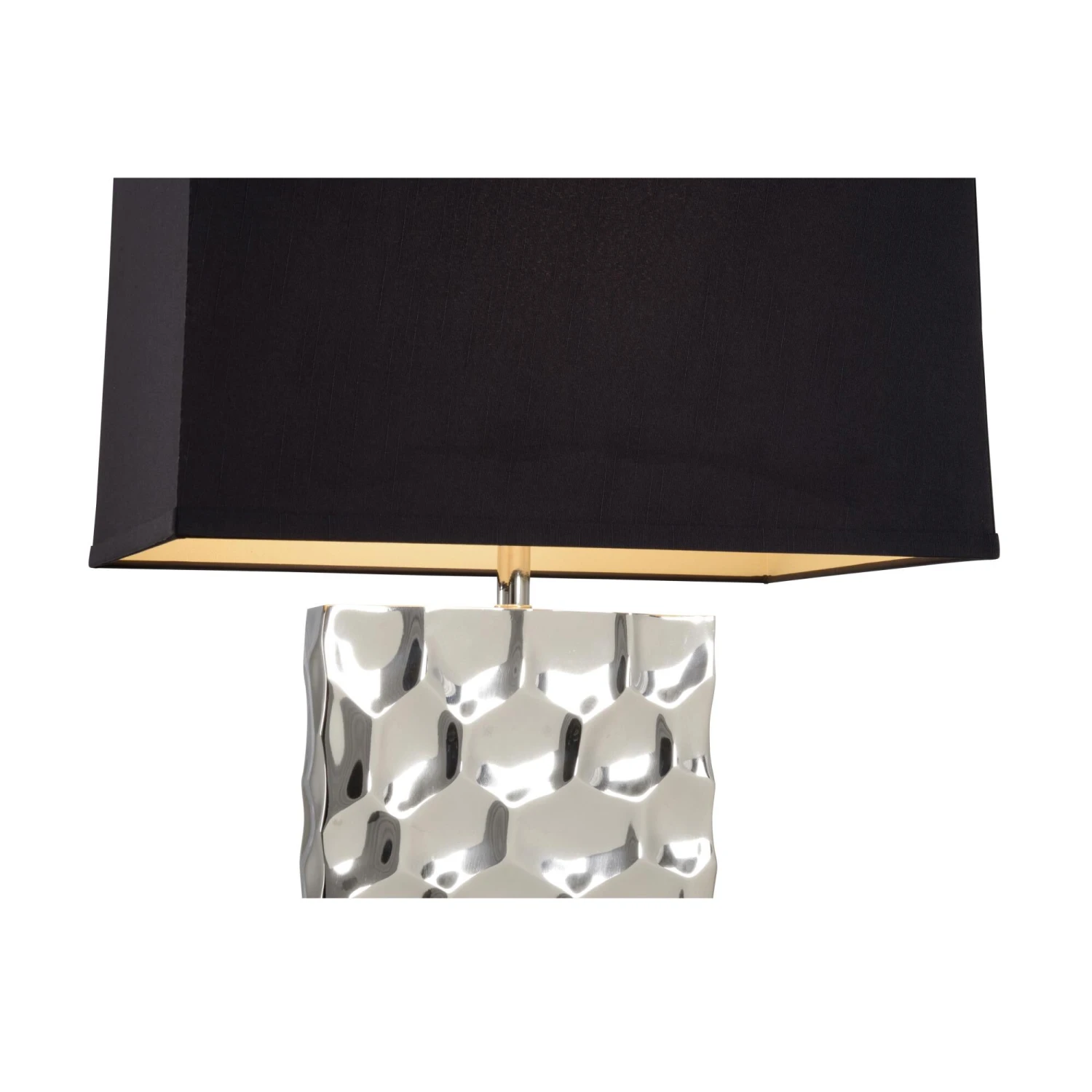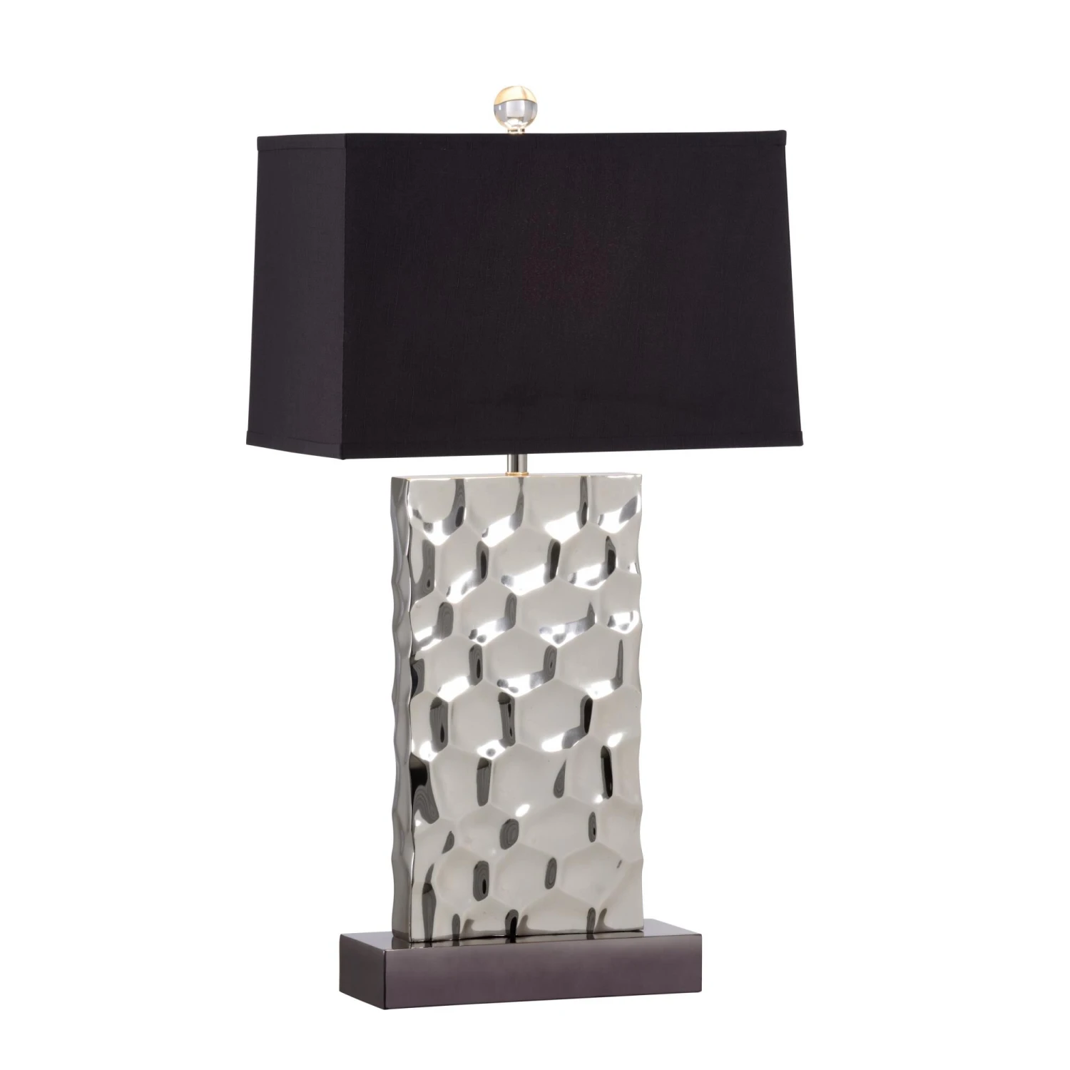 Hammered Honeycomb Lamp Provides Ample Ambient Lighting As Well As A Reflective Glow That Glistens Off Of The Polished Nickel Finish Of The Honeycomb Designs. This Stainless Steel Accent Lamp Comes With A Rectangular, Black Shade And Acrylic Ball Finial, Creating A Transitional Light Source To Brighten A Bedroom, Den, Entryway Or Living Room.