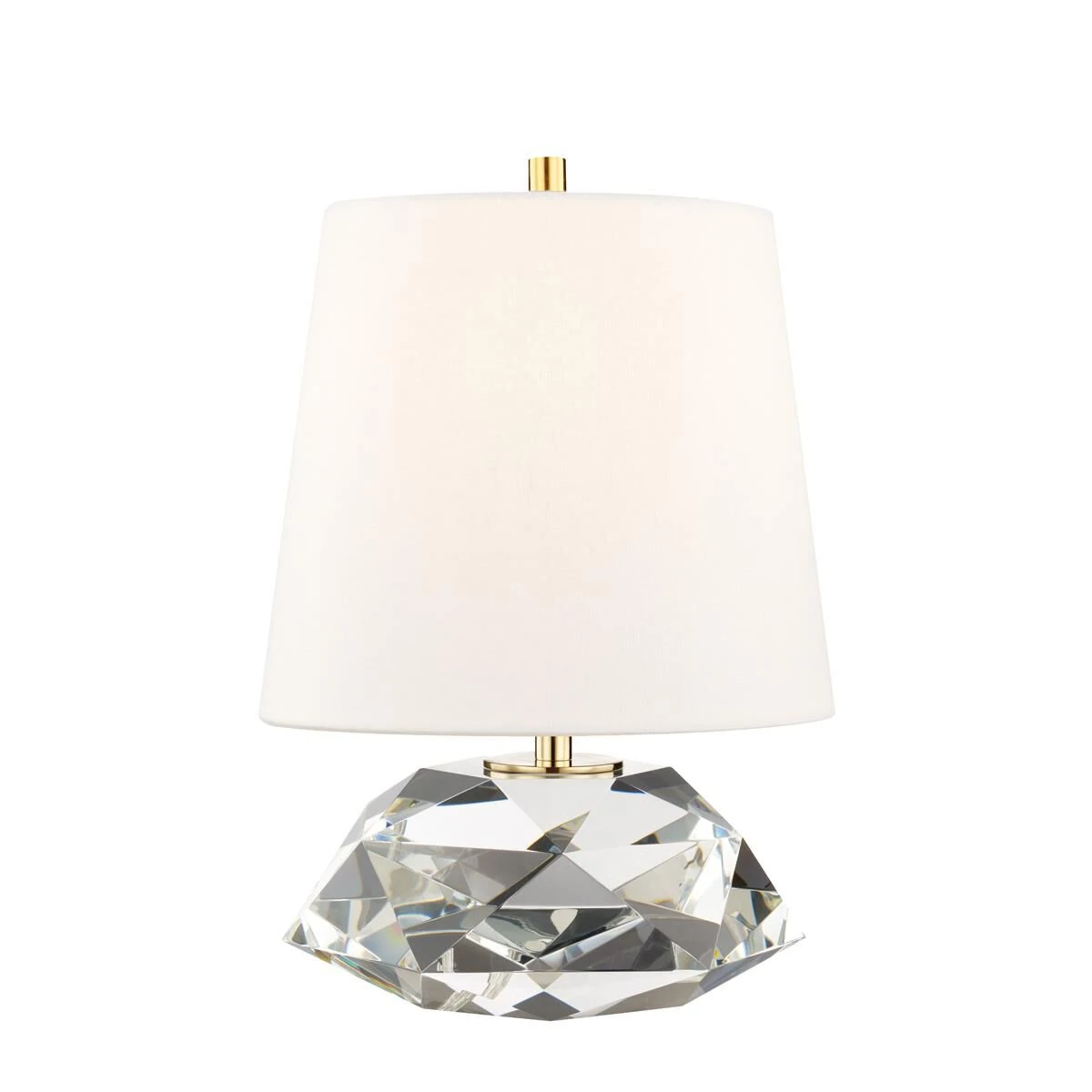 A table lamp sometimes adds a visual weight that helps anchor a space at the same time it illuminates it and provides a decorative accent. Henleys dense base of multifaceted crystal has that effect. A perfectly proportioned shade of Belgium linen completes this glamorous addition.