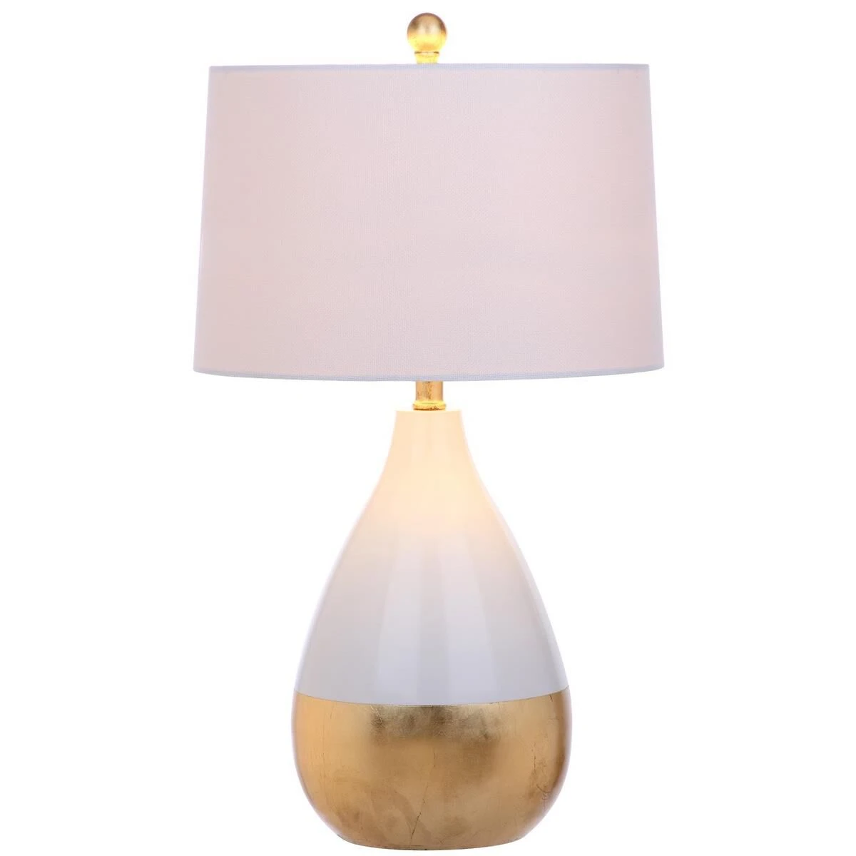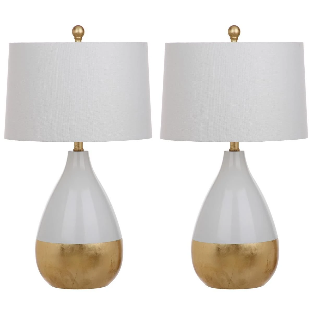 The decadent decor of a Londons designers lush home inspired this set of 24-inch white and gold table lamps. Place on either side of a living room armoire for a radiant focal point that speaks to the educated eye, or in the boudoir for an opulent touch. Set of 2 Lamps.