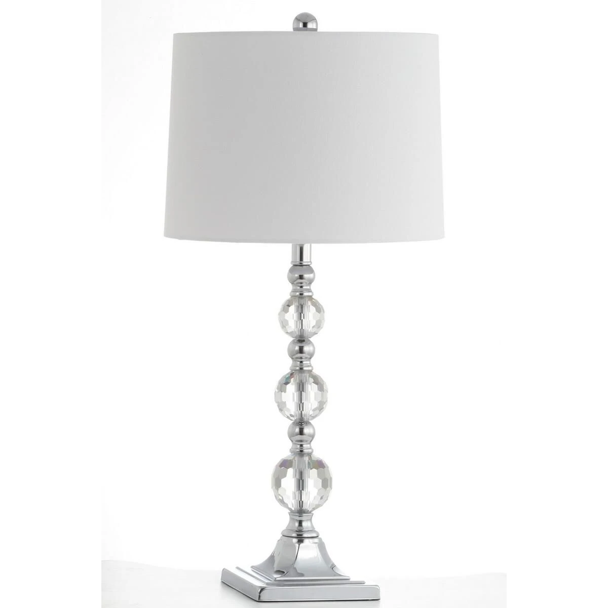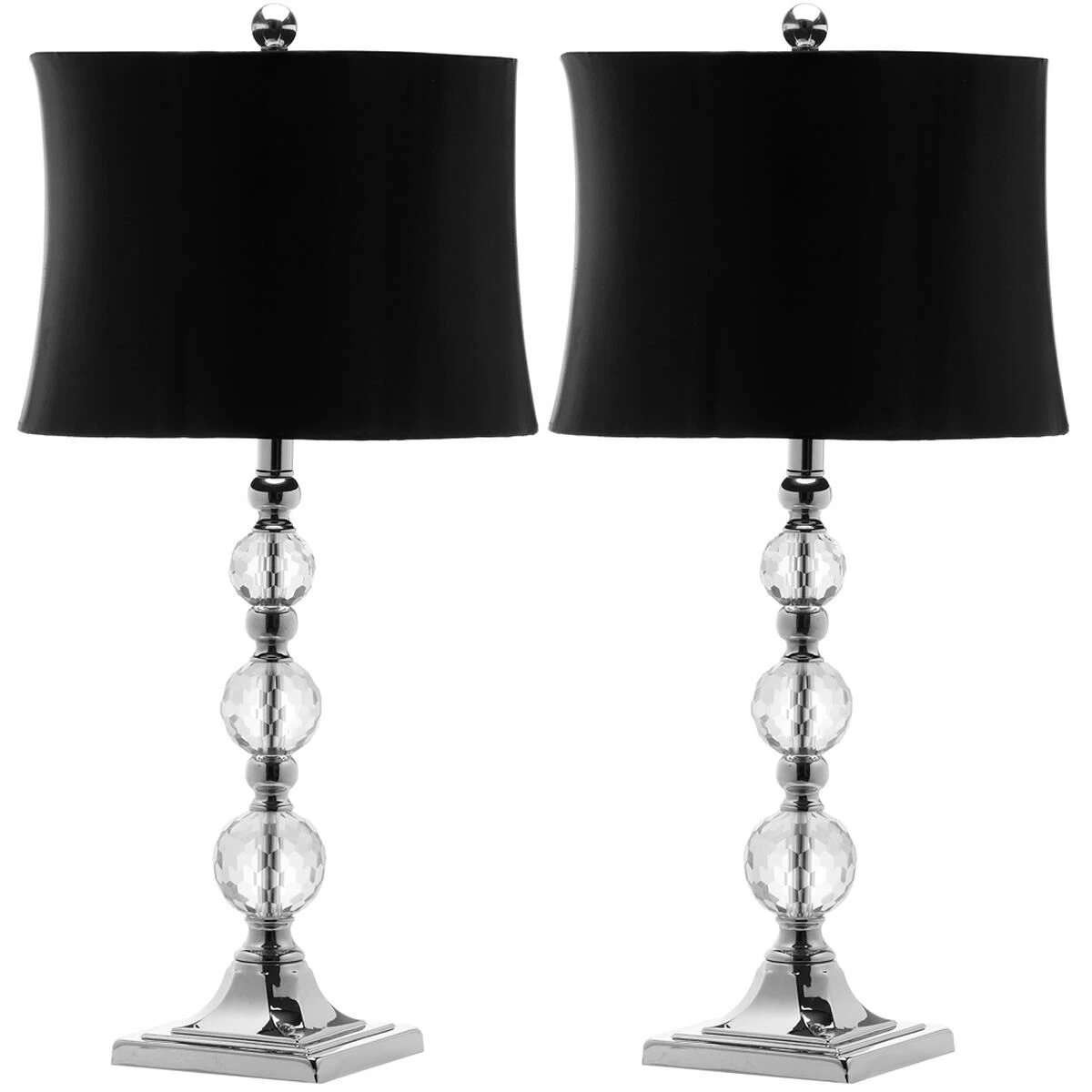 Inspired by Irish cut crystal, the Maeve Crystal Ball lamp will refract light beautifully in elegant traditional rooms. Crafted of crystal with sparkling chrome accents, this romantic-looking set of two lamps features beautiful white satin shades. Set of 2 Lamps.