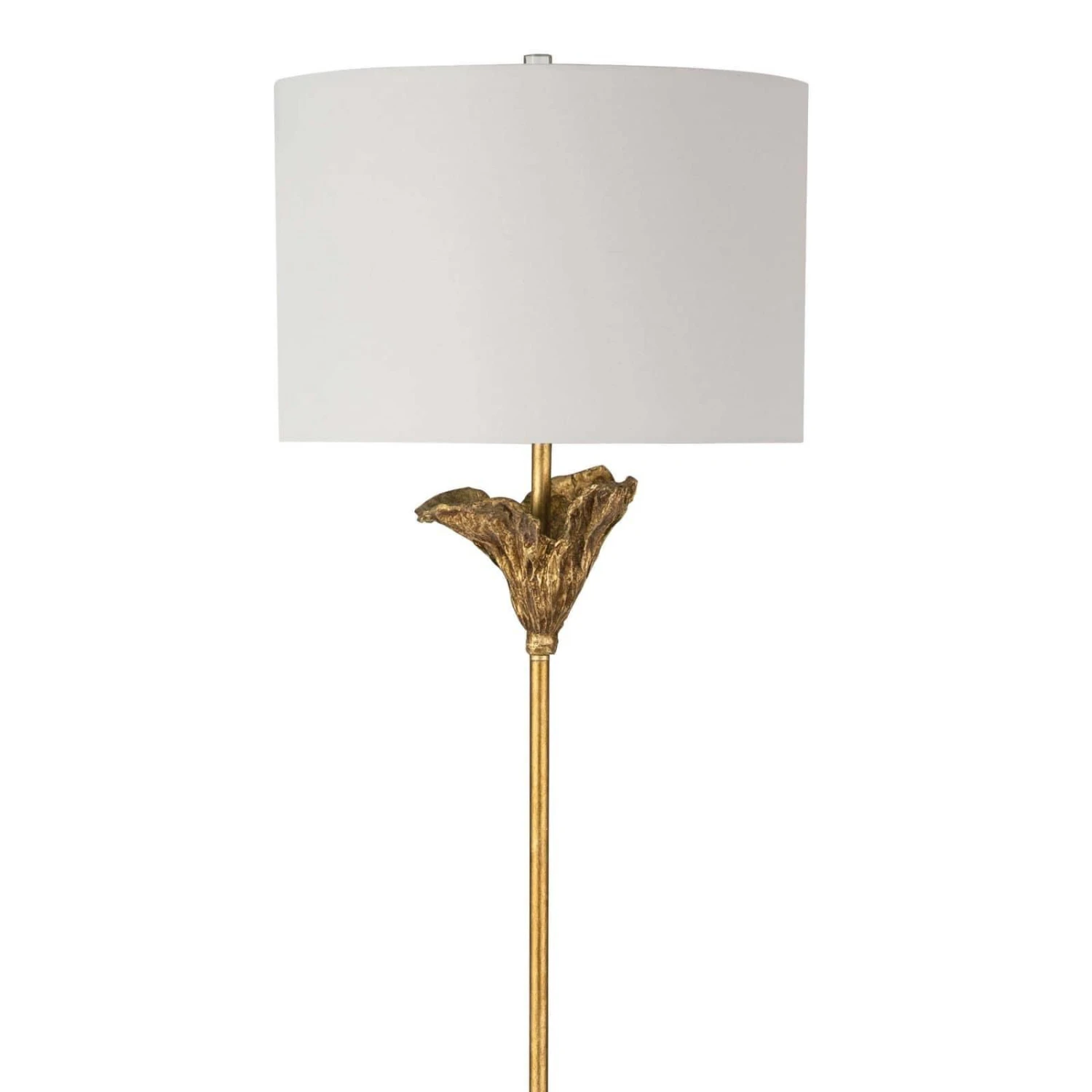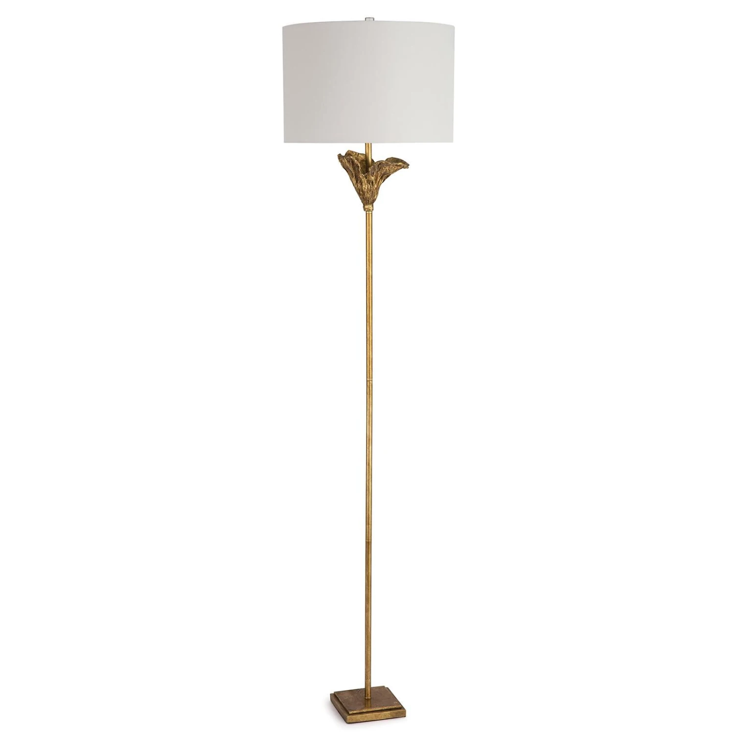 Inspired by the Impressionist paintings of the famous artist, our Monet floor lamp features a delicate blooming flower positioned at the top of a slender base. Intricately gilded gold with modern lines, this lamp has an updated traditional style that will complement a modern living room.