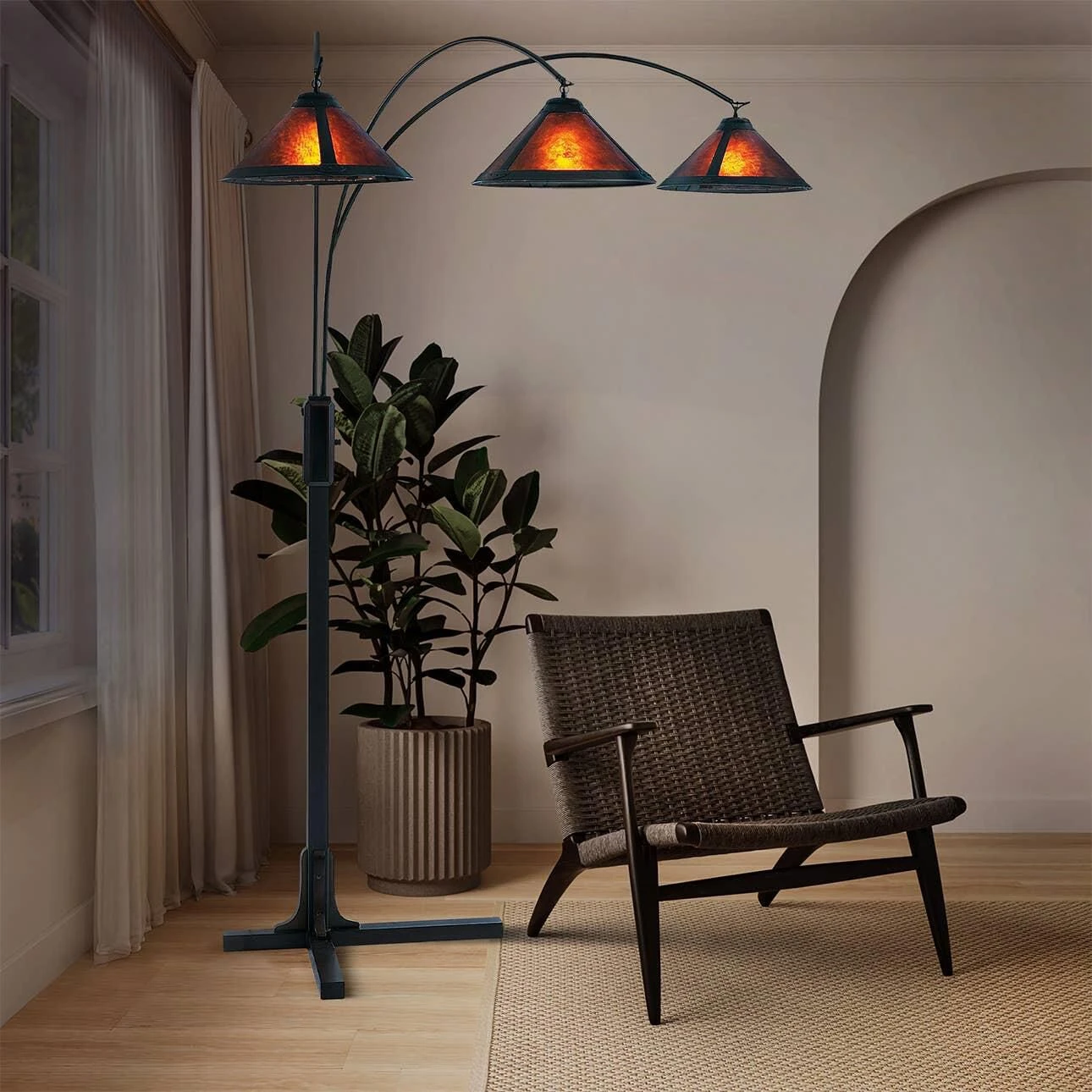 The Mica 3-Light Arc Lamp adds traditional flair to your home office or living space. With a mica shade and rich coloring, this piece is both classic and elegant. Brighten your space with the durable Mica for a soft and warm accent.TOUCH OF MODERN: Beautify your home with this exquisite Plimpton Arc Lamp, featuring a dark brown and brushed nickel finish with a steel base, and a white linen shade.ORIGINAL DESIGN: Nova was founded in 1923 with a commitment to creating original lighting designs that were well crafted with attention to detail and this floor lamp is no exception.