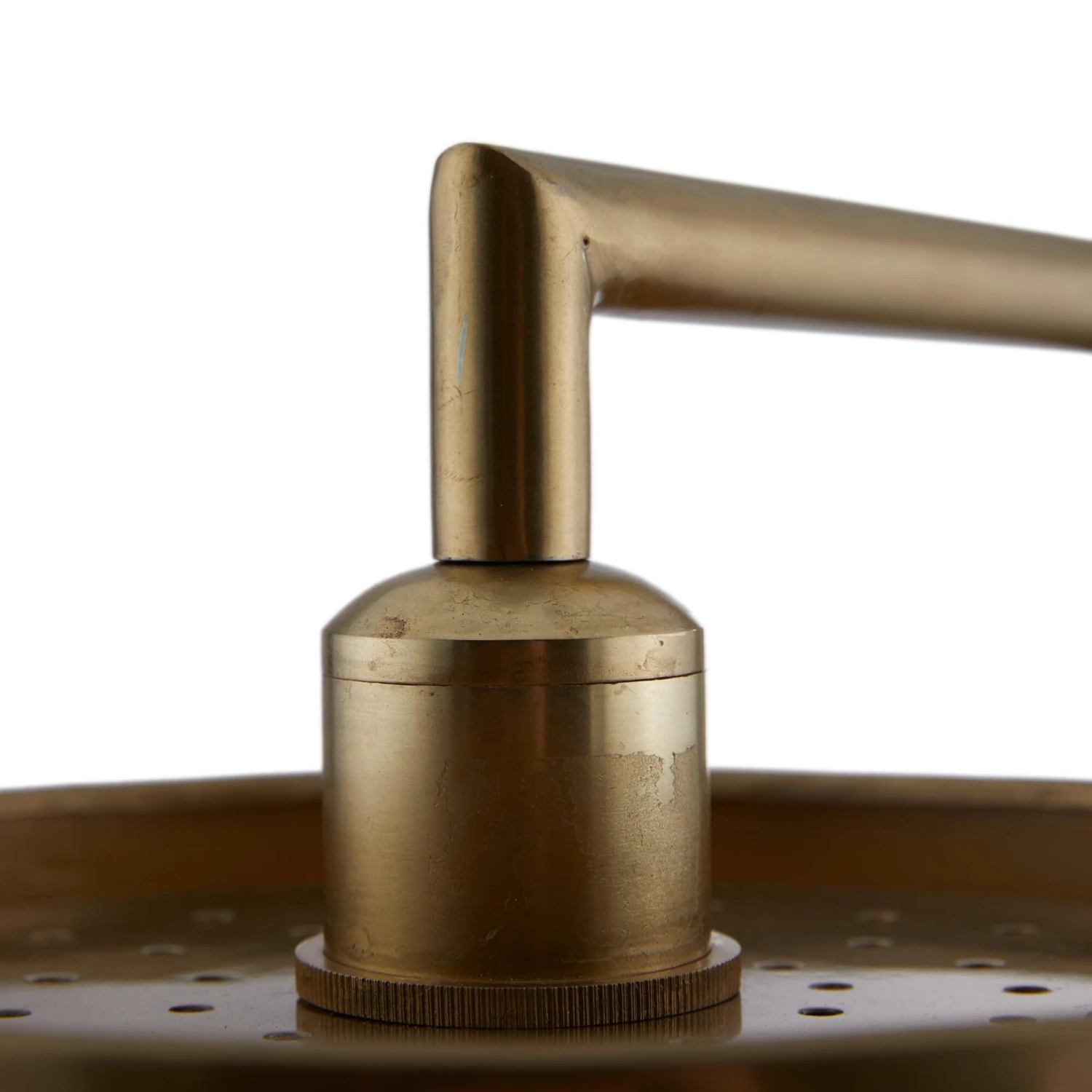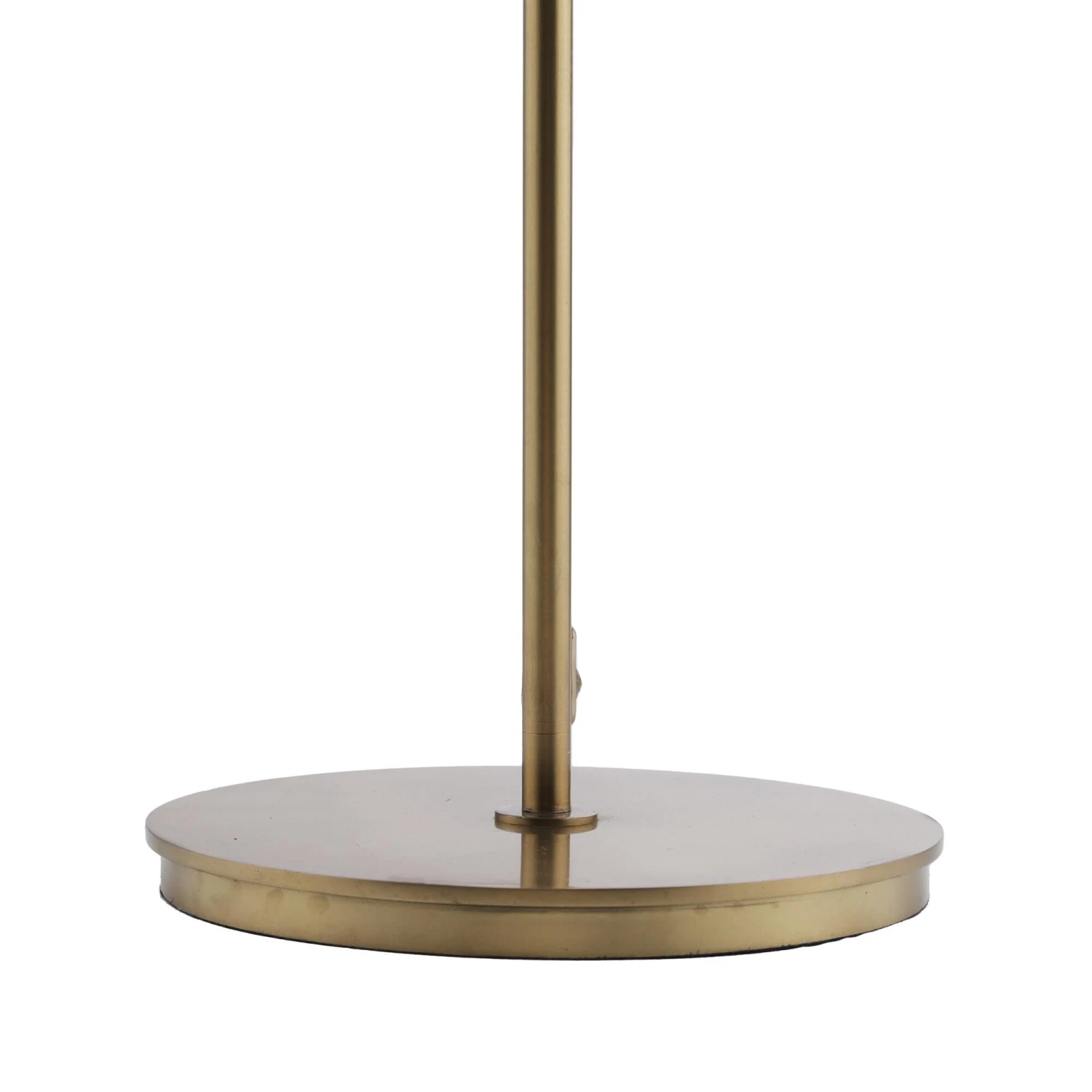 Luxurious by design in reflective vintage brass iron, the Nolan floor lamp is imagined in a task-lighting style to emit directional light. The low-profile lamp features a matching metal drum shade with a bronzed iron inner shade that creates dimension.