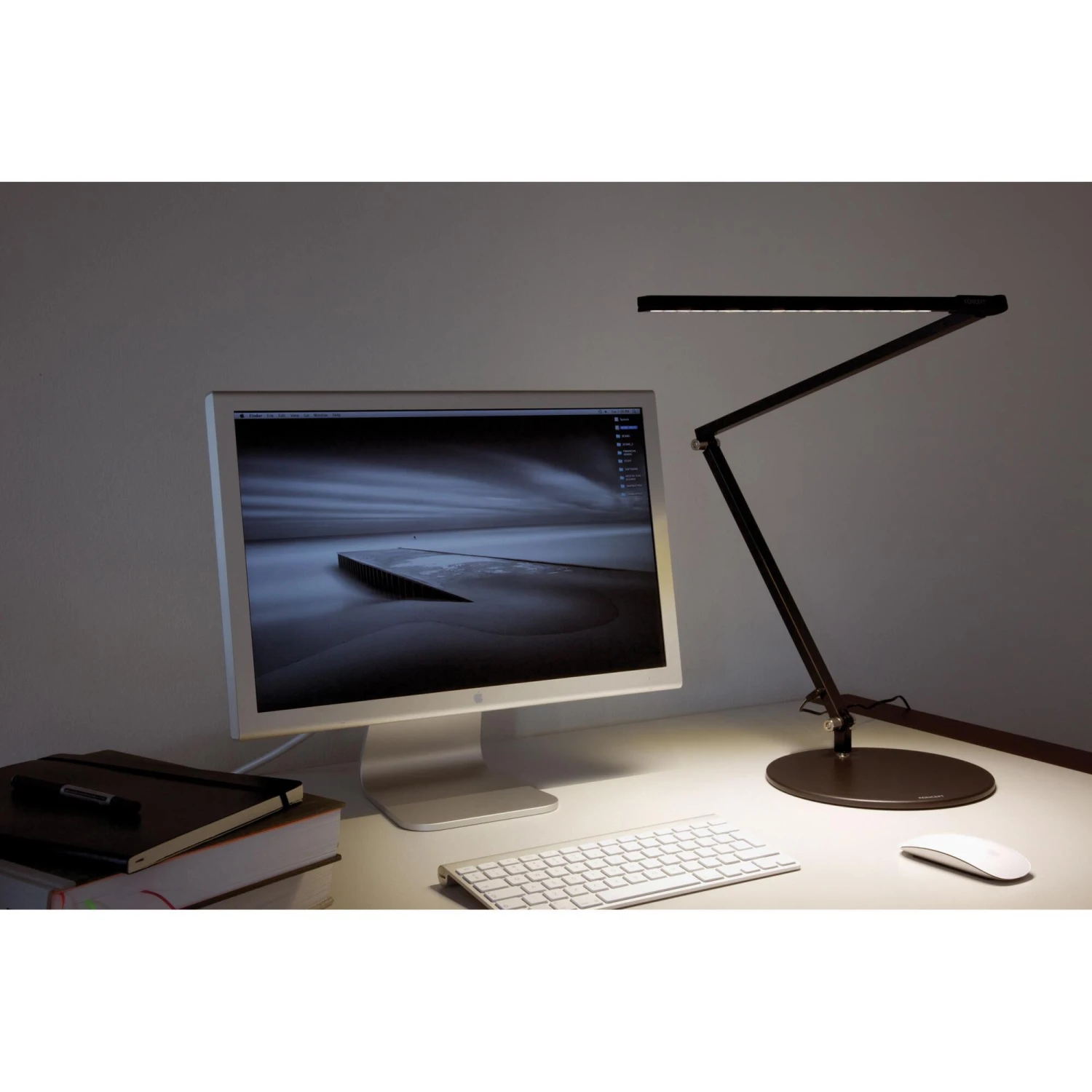 Z-Bar Desk Lamp features an award-winning three-bar design for ultimate reach and flexibility. The super-adjustable LED head can spin in its socket, sweep side to side, and rotate around the end of the arm to point in any direction. The touchstrip is located near the LED head for easy access. Slide your finger along the strip to dim gradually, or touch the strip anywhere to jump directly to any brightness, including off. Compatible with optional occupancy sensor. Multiple mounting options allow users to free up desk space.
