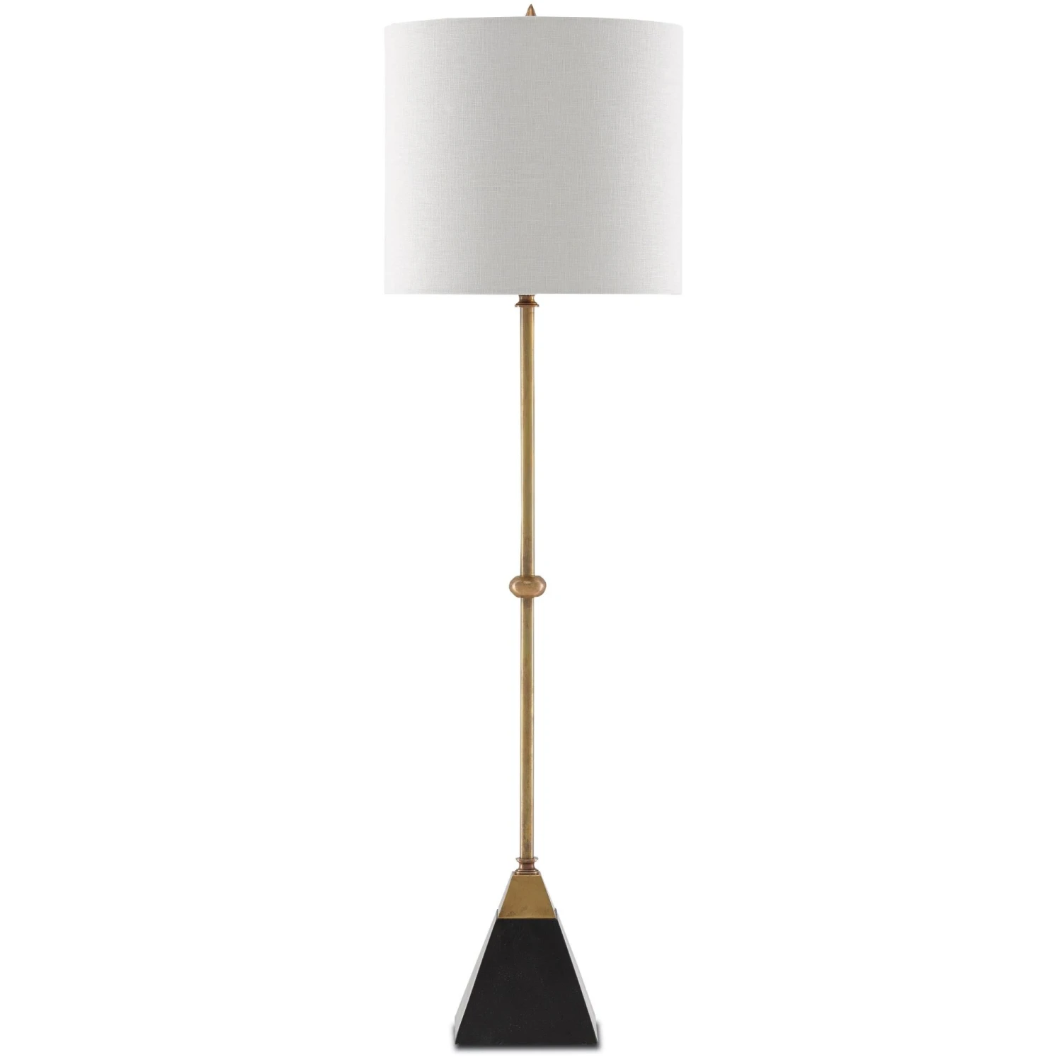 A slender form made of brass with a tapered granite base makes the Recluse Table Lamp apropos for so many design styles. The stem with its tiny cup-like details at its bottom and apex, a central knob and an arrow-shaped finial are classically rendered features. The vintage brass finish on the metal and the pyramid-shaped black granite combine to anchor the lamp while the bone linen shade and the fixtures slenderness lighten its profile.