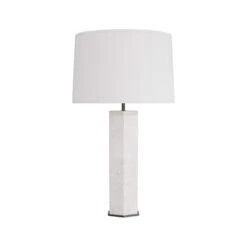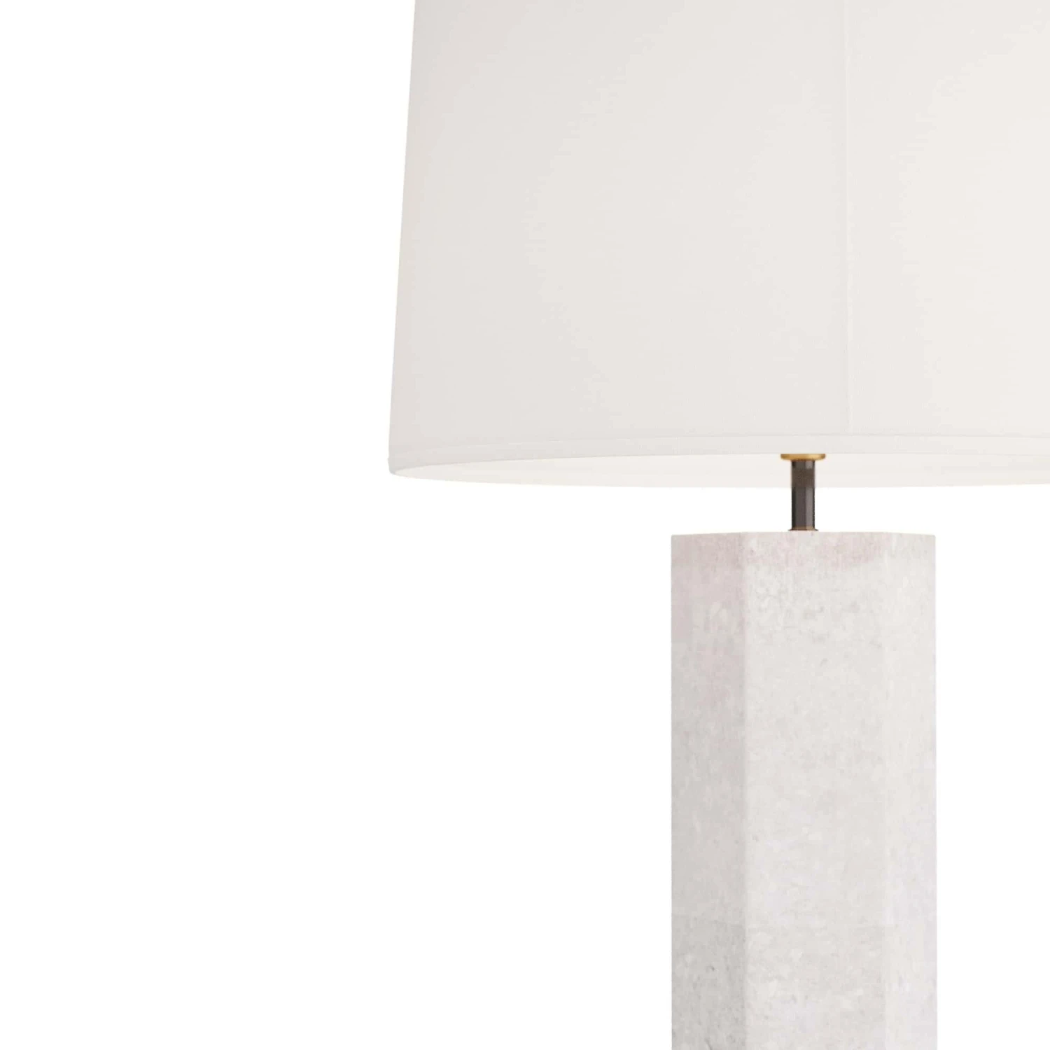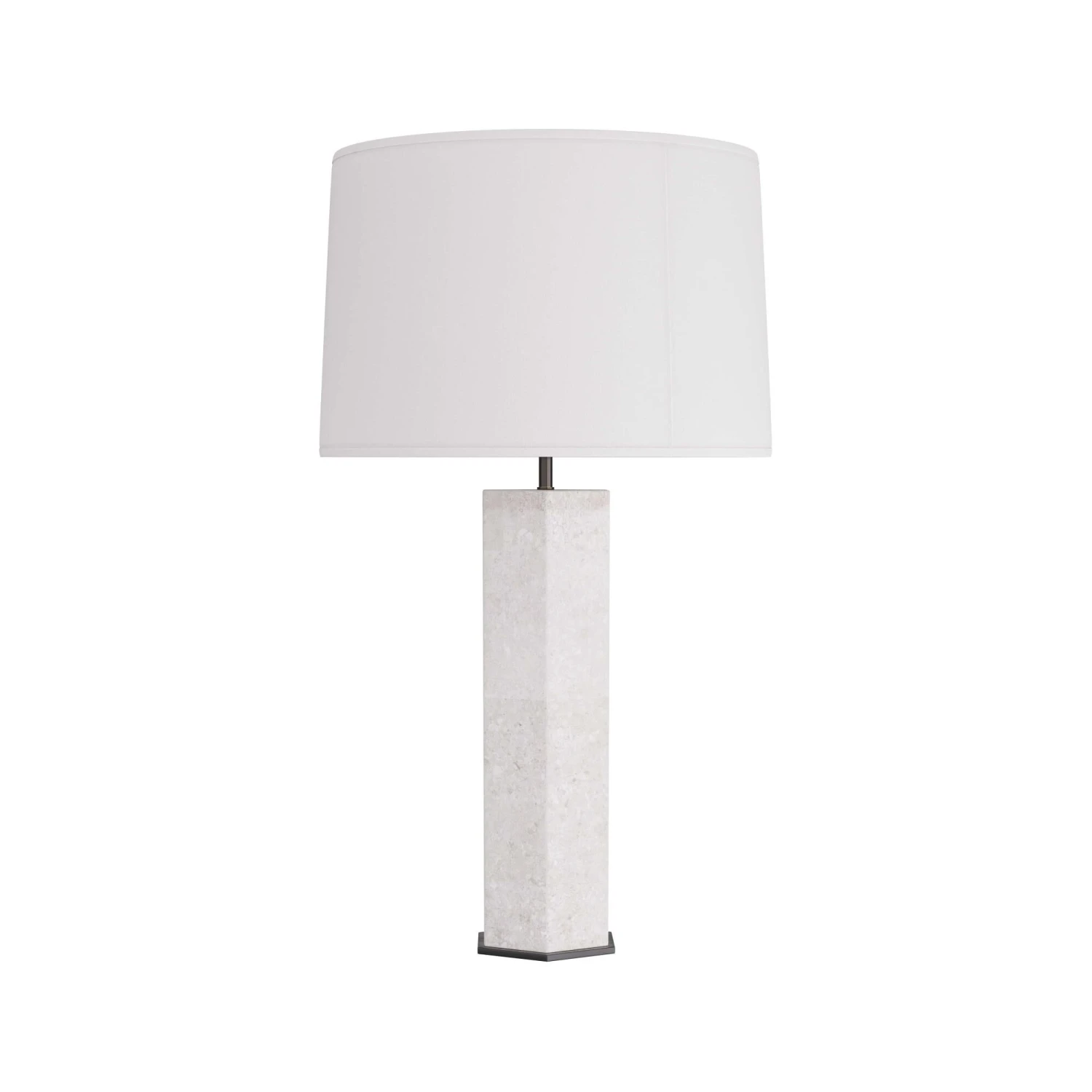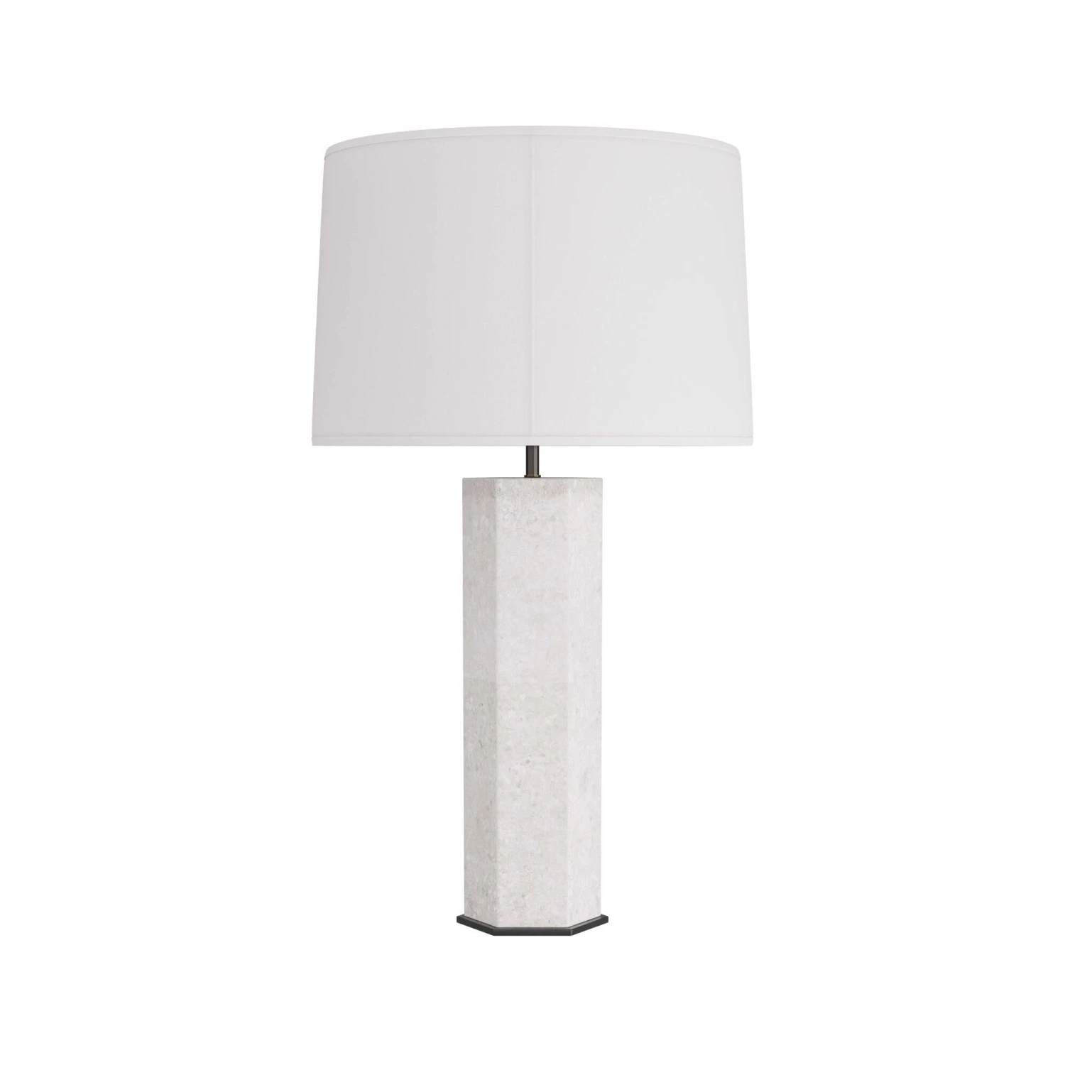 Elegant And Architectural, The Vesanto Lamp Mixes Effortlessly With Any Design Style. The Simple, Hexagonal Post Is Carved In Ivory Glass Stone Composite, Which Mimics The Pebbled Nature Of Natural Stone. An English Bronze Steel Base Follows The LampS Angular Shape. The Light Is Finished With A Cylindrical Finial In An English Bronze Finish And An Off-White Microfiber Drum Shade, Lined In Off-White Cotton. Finish Will Vary.